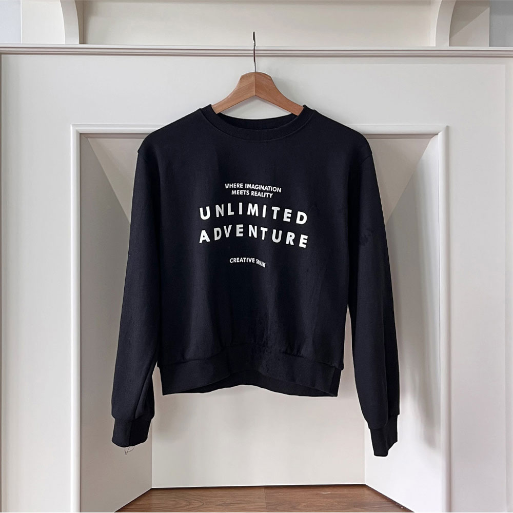 크롭디자인의 심플한 맨투맨. 가슴 레터링이 은은하게 포인트를 주며, 편한핏감의 맨투맨으로 연출하기 좋은 옷이랍니다.